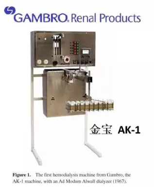 動(dòng)靜脈shunt的發(fā)明,自體動(dòng)靜脈內(nèi)瘺成形術(shù)的成功,給慢性腎衰患者的治療帶來(lái)了新的福音,讓透析變?yōu)榭赡?。透析設(shè)備所蘊(yùn)含的巨大商業(yè)價(jià)值也立刻被嗅覺(jué)敏銳的商人運(yùn)用起來(lái),下圖為金寶和百特各自推出的第一代透析機(jī),如今金寶已被百特并購(gòu)。