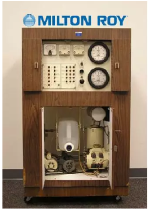 世界上第一臺(tái)透析液配比系統(tǒng)是在1963年,由伊利諾伊大學(xué)化學(xué)博士阿爾伯特·拜波(Albert Babb)發(fā)明,他采用了世界上第一臺(tái)計(jì)量泵的發(fā)明者,同時(shí)也是全世界最大的計(jì)量泵制造商Milton Roy的泵來(lái)為透析液配比。他將原型機(jī)命名為Mini-1,其最大的特點(diǎn)是可作為便攜式設(shè)備由單人使用。