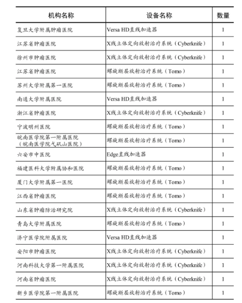 ? 高端放射治療設(shè)備。到2020年底,全國規(guī)劃配置216臺,其中新增188臺。
