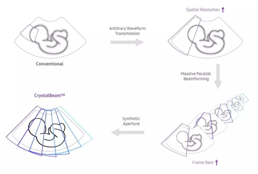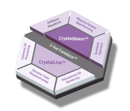 Hera i 10繼承并升級了全球首款5D超聲“三星麥迪遜WS80A”的“晶體結構”成像理念,即將CrystalBeam?波束形成技術、CrystalLive?超聲成像引擎、S-Vue Transducer?視覺傳感器集于一身,提供更清晰的圖像。
