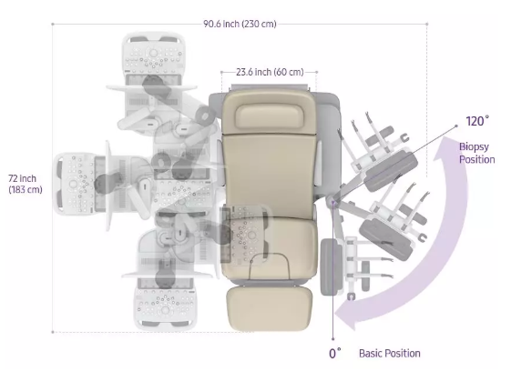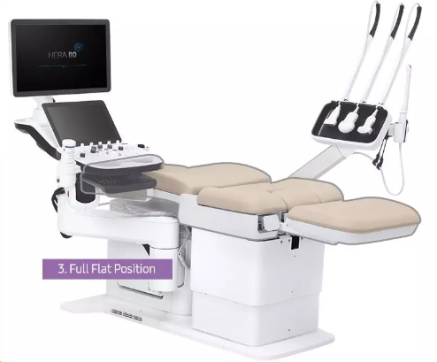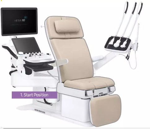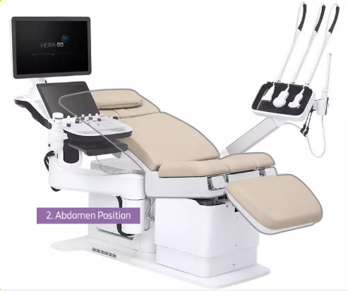 Hera i 10明顯區(qū)別于其他同類設備的亮點是安裝于顯示器右側的可調節(jié)座椅,最大尺寸長度為7.5英尺(230厘米)x寬6英尺(183厘米)x高度5.7英尺(175厘米)。座椅可通過機械控制,自動調整角度來配合醫(yī)生檢查和優(yōu)化患者就診體驗。
