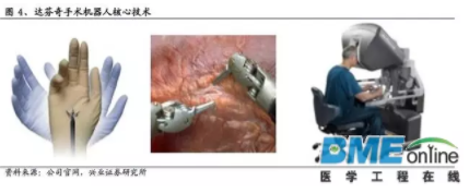 達芬奇手術(shù)機器人代表著當今手術(shù)機器人最高水平,它有三個關(guān)鍵核心技術(shù):可自由運動的手臂腕部Endo Wrist、3D高清影像技術(shù)、主控臺的人機交互設計。