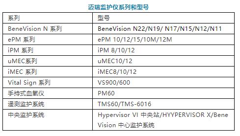 邁瑞的監(jiān)護(hù)儀系列包括BeneVision N系列、ePM系列、iPM系列、uMEC系列、iMEC系列、Vital Sign系列、遙測(cè)系列以及中央監(jiān)護(hù)站和手持式血氧儀。