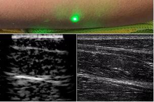 臨床應(yīng)用的無創(chuàng)超聲,要求探頭與人體皮膚直接接觸來向身體傳導(dǎo)高頻振動(dòng)的超聲波。但是,有一些特定的患者卻在超聲檢查時(shí)受到限制,比如兒童、燒傷患者和敏感皮膚患者等。而近日麻省理工學(xué)院的研究人員證明,確實(shí)有可能使用激光在不接觸皮膚的前提下對(duì)患者進(jìn)行超聲波掃描。