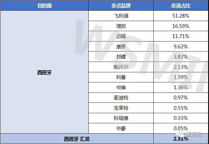 西班牙市場為中國心電圖出口第十大市場,共計(jì)12家出口商,占全年心電圖出口2.31%的份額。其中飛利浦在西班牙市場的占有率高達(dá)51.28%。