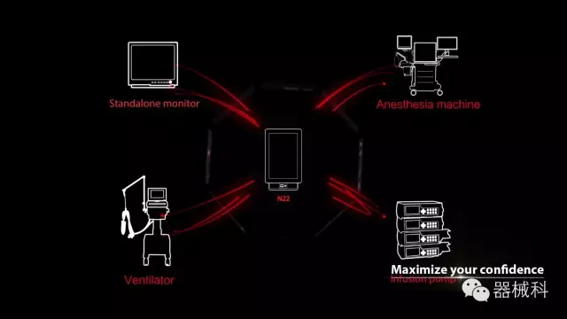 在N22監(jiān)護儀上可以查看其它相關設備的信息,這是大物聯(lián)網的前奏?。▽Α叭f物互聯(lián)”感興趣的童鞋們還可以在網上圍觀一下OMAHA——開放醫(yī)療與健康聯(lián)盟的最新進展......)!但是現(xiàn)在的形式很難讓臨床科室在信息采集和處理中以床旁監(jiān)護為中心,后面會講到。