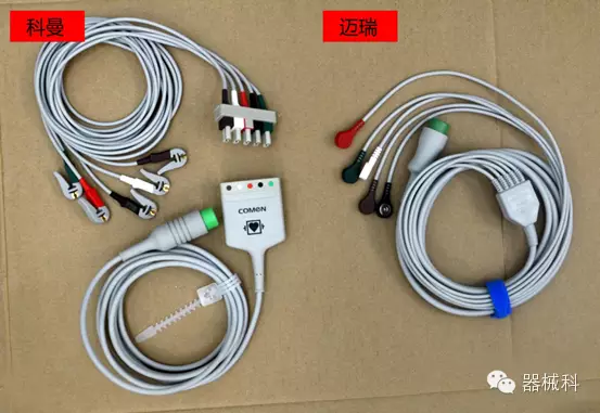 科曼采用防除顫分體夾式5導(dǎo)聯(lián)線,分纜長(zhǎng)度為L(zhǎng)A,RA,V導(dǎo)聯(lián)1米;RL,LL導(dǎo)聯(lián)1.6米;邁瑞采用防除顫一體扣式5導(dǎo)聯(lián),分纜統(tǒng)一為0.6米,主纜部分長(zhǎng)度一樣。導(dǎo)聯(lián)線上的分纜,容易損壞。如果只是分纜換了,分體式只用換掉分纜就行了,而一體式只能換掉附件,減少不必要的浪費(fèi),提高使用率,節(jié)約成本。