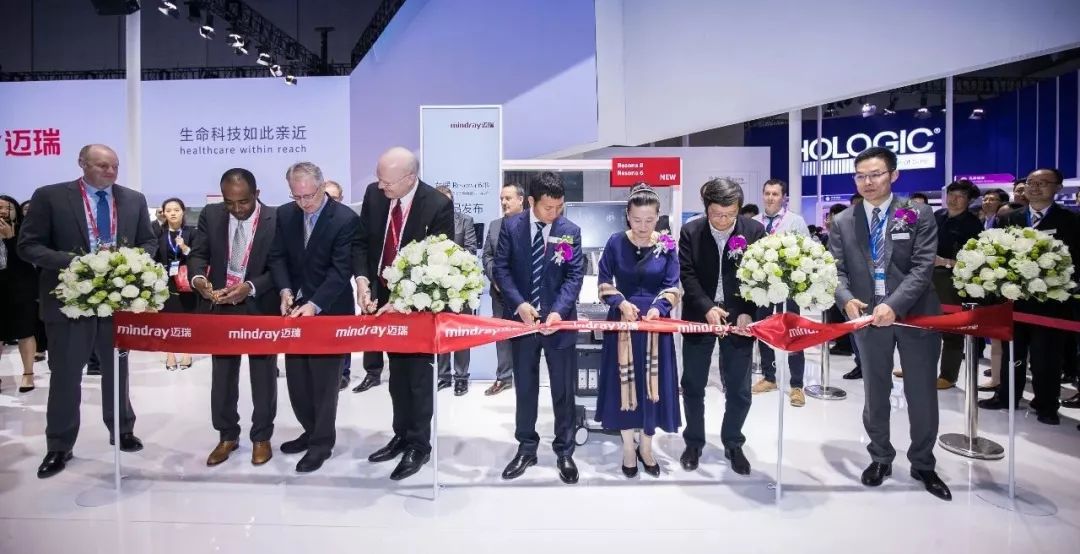 開幕當日,四位來自美國頂級醫(yī)院的臨床工程大咖、以及中華醫(yī)學會超聲專委會副主任委員兼婦產(chǎn)學組組長田家瑋教授、上海交通大學醫(yī)學院附屬瑞金醫(yī)院超聲診斷科主任詹維偉教授、邁瑞醫(yī)療高級副總裁李在文,邁瑞國內(nèi)營銷副總經(jīng)理黃鵬程等共同出席了智能高端婦產(chǎn)超聲女媧 Resona 8 的剪彩儀式。