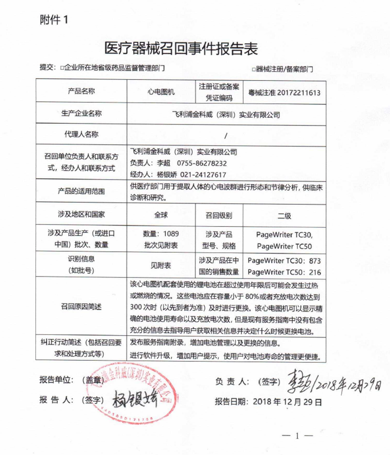 新年伊始,國家藥品監(jiān)督管理局官網又見飛利浦兩則醫(yī)療器械主動召回報告,召回產品包括33982臺病人監(jiān)護儀和2650臺心電圖機,召回級別均為二級。