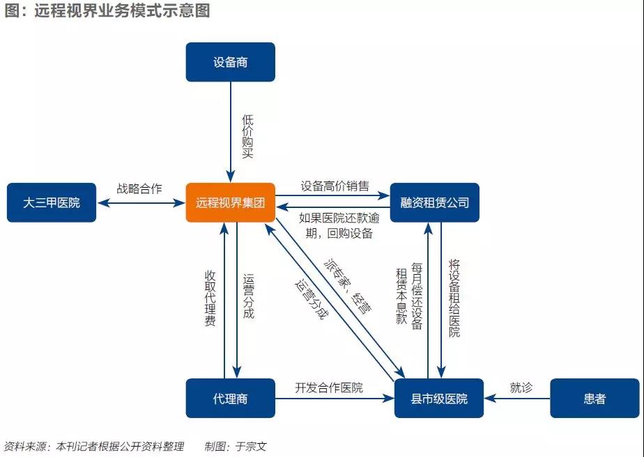 在遠(yuǎn)程視界官網(wǎng)上,其自我定位為“專(zhuān)科遠(yuǎn)程醫(yī)療聯(lián)合體O2O平臺(tái)”。但一位前員工解釋說(shuō),其主要盈利模式就是做融資租賃。