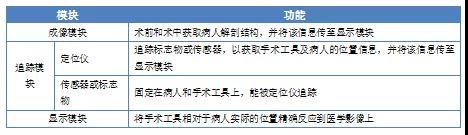 手術(shù)導(dǎo)航系統(tǒng)使醫(yī)生在微創(chuàng)手術(shù)時(shí)能了解手術(shù)工具相對(duì)于解剖結(jié)構(gòu)的位置。在手術(shù)導(dǎo)航系統(tǒng)出現(xiàn)之前,醫(yī)生只能依靠?jī)?nèi)鏡進(jìn)行微創(chuàng)手術(shù),或?qū)嵤╅_(kāi)放式手術(shù)。相比開(kāi)放性手術(shù),微創(chuàng)手術(shù)有創(chuàng)傷小的優(yōu)勢(shì);相比內(nèi)窺鏡介導(dǎo)下的微創(chuàng)手術(shù),手術(shù)導(dǎo)航系統(tǒng)導(dǎo)航下的微創(chuàng)手術(shù)有精度高、使用范圍廣的優(yōu)勢(shì)。手術(shù)導(dǎo)航系統(tǒng)一般包括三個(gè)模塊,具體如下表。
