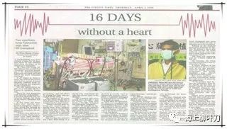 15.這個(gè)病人做了心臟移植,最后還是很清醒地回家了。這是新加坡《海峽日?qǐng)?bào)》的報(bào)道Sixteen Days Without A Heart。