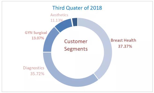 2018年第三季度,豪洛捷公司總營收收入為8.24億美元,同比增長2.2%,收入增長主要由乳腺健康和國際業(yè)務(wù)驅(qū)動(dòng)。乳腺健康業(yè)務(wù)收入達(dá)3.079億美元,同比增長8.5%;國際業(yè)務(wù)收入(不包括收購的Cynosure業(yè)務(wù))達(dá)到1.683億美元,同比增長20.2%;診斷業(yè)務(wù)總收入為2.94億美元,同比增長3.6%;婦科手術(shù)收入為1.077億美元,同比增加1.1%。