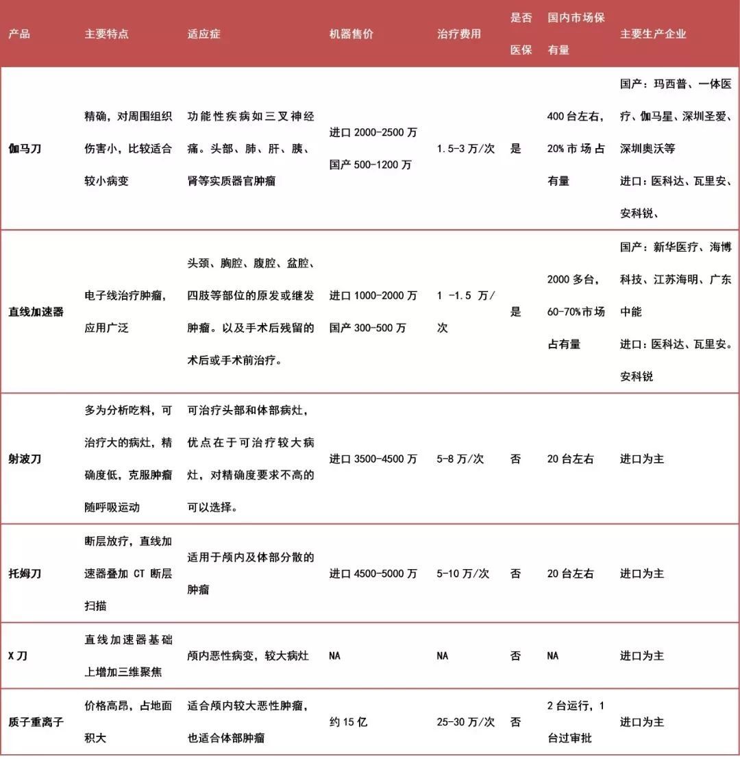 目前的放射治療技術(shù)包括伽瑪?shù)?、射波刀、托姆刀、質(zhì)子重離子、EDGE(速鋒刀)無(wú)創(chuàng)手術(shù)系統(tǒng)。各技術(shù)的特點(diǎn)如下。